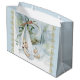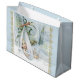 Boy baby shower gift bag with vintage stork and baby boy on a baby blue and gold lace background. This stork baby gift bag is easily customised with text, and you can change the background colour.