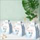 For a stylish baby boy shower, With a flying stork holding gifts. Personalise and add the name and date With the text "Baby Shower". The name is written with a modern and trendy hand lettered style script with swashes.