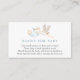 A book request insert card for baby shower. Featuring a watercolor stork carrying a baby wrapped in a blue blanket with poem: "ONE SMALL REQUEST, WE HOPE NOT TOO HARD