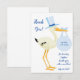 Thank you for showering baby boy with love! EOS lip balm favour card featuring a stork with a blue bundle of joy.
