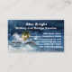 Book in Storm Blue Clouds Writer and Book Designer Business Card. Dark blue storm clouds with an open book with a tropical tree image coming out. Ideal for freelance writers, writing services, book businesses, and services. A graphic designer and more. Change the wording, text style, sizes, colour of text, and your business information on this card.