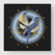 Blue & Straw Birds ~ Gold Musical Scroll ~ * ~ Square Wall Clock