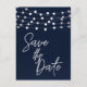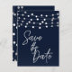 Blue String Lights Modern Script Save the Date Announcement Postcard