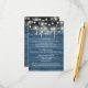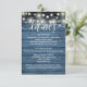 A rustic wedding details information enclosure card features pretty string lights and a blue wood panels background. Personalise with your special details set in stylish typography and your names and wedding date on the reverse. Designed by Thisisnotme©