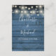 Blue String Lights Rustic Wood Wedding Details Enclosure Card