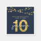 Impress your guests with this 10 year class reunion napkin featuring strings of lights and "10" in faux gold with "year reunion" in white against a dark blue background. Check out other matching items here https://www.zazzle.com/collections/school_reunion-119258151199573326?rf=238364477188679314