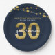 Throw a 30 Year Class Reunion and impress guests with matching paper plates. This stylish plate features strings of lights and "30" in faux gold with "year reunion" in white against a dark blue background. Check out matching invitations and items like stickers here https://www.zazzle.com/collections/school_reunion-119258151199573326?rf=238364477188679314