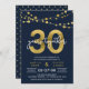 Elegant 30th Anniversary invitation featuring strings of lights and "30" in faux gold with "years together" in white against a dark blue background. Card includes a matching pattern back side. Check out matching items like stickers and stamps here https://www.zazzle.com/collections/strings_of_lights_faux_gold_celebration_collection-119311942951401241?rf=238364477188679314
