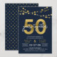 Elegant 50th Anniversary invitation featuring strings of lights and "50" in faux gold with "years together" in white against a dark blue background. Card includes a matching pattern back side. Check out matching items like stickers and stamps here https://www.zazzle.com/collections/strings_of_lights_faux_gold_celebration_collection-119311942951401241?rf=238364477188679314