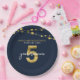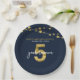 Throw a Five Year Class Reunion and impress guests with matching paper plates. This stylish plate features strings of lights and "5" in faux gold with "year reunion" in white against a dark blue background. Check out matching invitations and items like stickers here https://www.zazzle.com/collections/school_reunion-119258151199573326?rf=238364477188679314