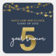This elegant Five Year Class Reunion square sticker features strings of lights and "5" in faux gold foil with "year reunion" in white against a dark blue background. Check out matching invitation and stamps here https://www.zazzle.com/collections/school_reunion-119258151199573326?rf=238364477188679314