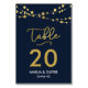 Elegant Table Card that you can edit the number featuring strings of lights and the word "Table" in faux gold foil against a dark blue background. Check out matching items like stickers and postage stamps here https://www.zazzle.com/collections/strings_of_lights_faux_gold_celebration_collection-119311942951401241?rf=238364477188679314
