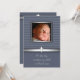 Blue Stripe Baby Boy Photo Christening Invitation