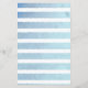 Cute, blue white, watercolor striped background for a baby boy themed baby shower. A tan bunny appears just above honoree's name.