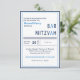 A simple and modern invitation featuring clean blue lines and your personalised details, with a silver star at the bottom, and a subtle blue texture on the back.