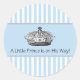 Blue and white stripes with prince crown centre and the words, "A Little Prince is on His Way!" baby boy shower invitation envelope seal sticker and party favour label.