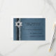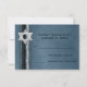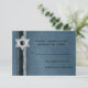 Stylish Bar Mitzvah response card with silver Star of David and side stripes in shades of blue on aged-look blue background. Easy to customise with the details of your event. Coordinating invitation available in store.