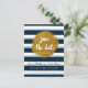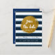 Blue Striped & Gold Foil Save The Date Postcard