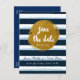 Blue Striped & Gold Foil Save The Date Postcard. Matching items available.