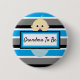 Blue, black and grey striped baby shower button with a cute baby boy for the grandma to be.