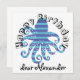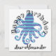 Cool blue horizontal striped octopus with text: Happy Birthday and a name template. Click personalise and change the name to yours.