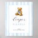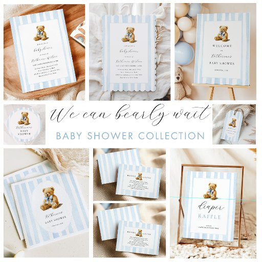Blue Stripes Bear Baby Shower Diaper Raffle Poster