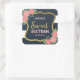Blue Stripes, Blush Pink Roses Sweet 16 Square Sticker