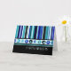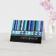 Business from all of us birthday card featuring a modern blue and black stripes and circles pattern. Perfect for employees. Customisable, also available in other cards.