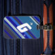 Personalised (name and initial) design of diagonal blue-stripes. On your next flight, do not worry about losing your bags