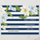 Dark blue stripes flowers modern floral wedding ceremony and party folded program featuring elegant white and two tone blue flowers with green leaves on a striped pattern made of navy blue and white stripes. This stylish contemporary wedding template is fully customisable and is great for a spring or summer wedding. Fold it in the centre to have a folded style wedding program. Choose only this type of paper-value as it folds well.