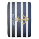 Blue Stripes & Gold Anchor Nautical Bath Mat