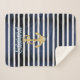 Blue Stripes & Gold Anchor Nautical Sherpa Blanket