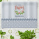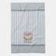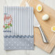 Ring in the holiday season with this customisable kitchen towel that features a simple illustration of holly leaves and berries on a blue and white striped background, polka dots, rickrack, script that reads, “Merry Christmas,” and customisable text that reads, “A Home Baked Holiday.” This design is simple and charming, and it will appeal to lovers of farmhouse, cottage, and country style decor. Change the customisable text to fit your gift giving needs.