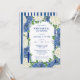 Blue Stripes Hydrangeas Wedding Rehearsal Dinner Invitation