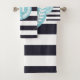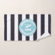 Blue Stripes Laurel Wreath Monogram Bath Towel Set