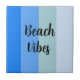 Cool blue and light green stripes pattern and a customisable text saying: Beach vibes. Fits a cheerful marine style.
