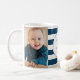 Customisable photo collage template merry christmas mug for the best grandma ever with customisable names in navy blue and white stripes pattern with silver details. A great gift for any grandmother.