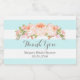 Custom text bridal shower label in pretty light powder blue and white stripes pattern with peach pink watercolor flowers.