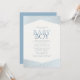 Modern diagonal stripes, blue baby shower invitation to welcome a newborn baby boy. Silver grey with light blue stripes that "wrap" the top and bottom of 5x7 inch custom card. Simple printed blue font is all upper case, with larger lettering in the centre.
