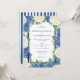 Invite your guests with style using this elegant wedding invitation. Our Blue Stripes White Hydrangeas Wedding Invitation features beautiful blue and white hydrangeas, lush greenery, and classic blue stripes. The harmonious blend of floral beauty and timeless design captures the romance and sophistication of your special day. Get ready to be swept away by the beauty of this floral wedding invitation, which sets the perfect tone for an unforgettable celebration.
