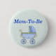Sweet Mum to Be button pin, in a tiny green and white checked background and blue text, across the top, reading, Mum-To-Be. Adorable graphics of a blue baby carriage decorates the bottom of the button. Perfect for the new mummy to be at her baby shower. Text is customisable to say what you want.