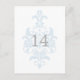 Modern with chic elegance describes this sophisticated Subtle Damask Wedding Table Number Postcard with a light blue damask flourish background. This classic table card is perfect for a traditional wedding and can be easily customised with a table number(s) or your wedding details. For more customisation options, click on the Customise It button.