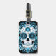 Dia de los Muertos sugar skull in colourful hues of blue surrounded by flowers.