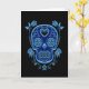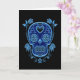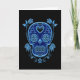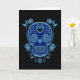 Blue Sugar Skull with Roses on Black Card