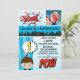 This boy's superhero 1st birthday party invitation features a silhouette of a city, a speech bubble and various cartoon styled words on a blue, white and blue background. The photo appears in the top right hand corner. I wanted to create some new boy's superhero invitations for the store to expand the collection. I have created this design for a few ages however if you require a number that is not available please contact me for a new template at no extra charge. This boy's 1st birthday super-boy, superhero invitation is ready to be personalised and is suitable for a boy's superhero birthday party.