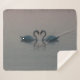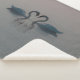 Awesome photograph of two swans swimming head to head creating the illusion of a heart on the water. They are on an early morning misty lake together,