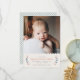 Announce the arrival of your beautiful baby girl with this simple and sweet birth announcement. The name of your baby, as well as the birth information, is framed by a wreath of delicate flowers and leaves. The top of the design features a pretty scalloped border. There is also space for a large photo of your new addition. The back of the card features a blue, hand-drawn gingham pattern... Be sure to check out the coordinating self-addressed envelope.