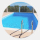 Blue swimming pool with steps at sea classic round sticker