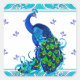 Blue swirl Border and Peacock Design Square Sticker