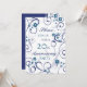 20th wedding anniversary party invitation card in elegant white and blue floral pattern, delicate and stylish with playful swirls. Customisable with your party details.